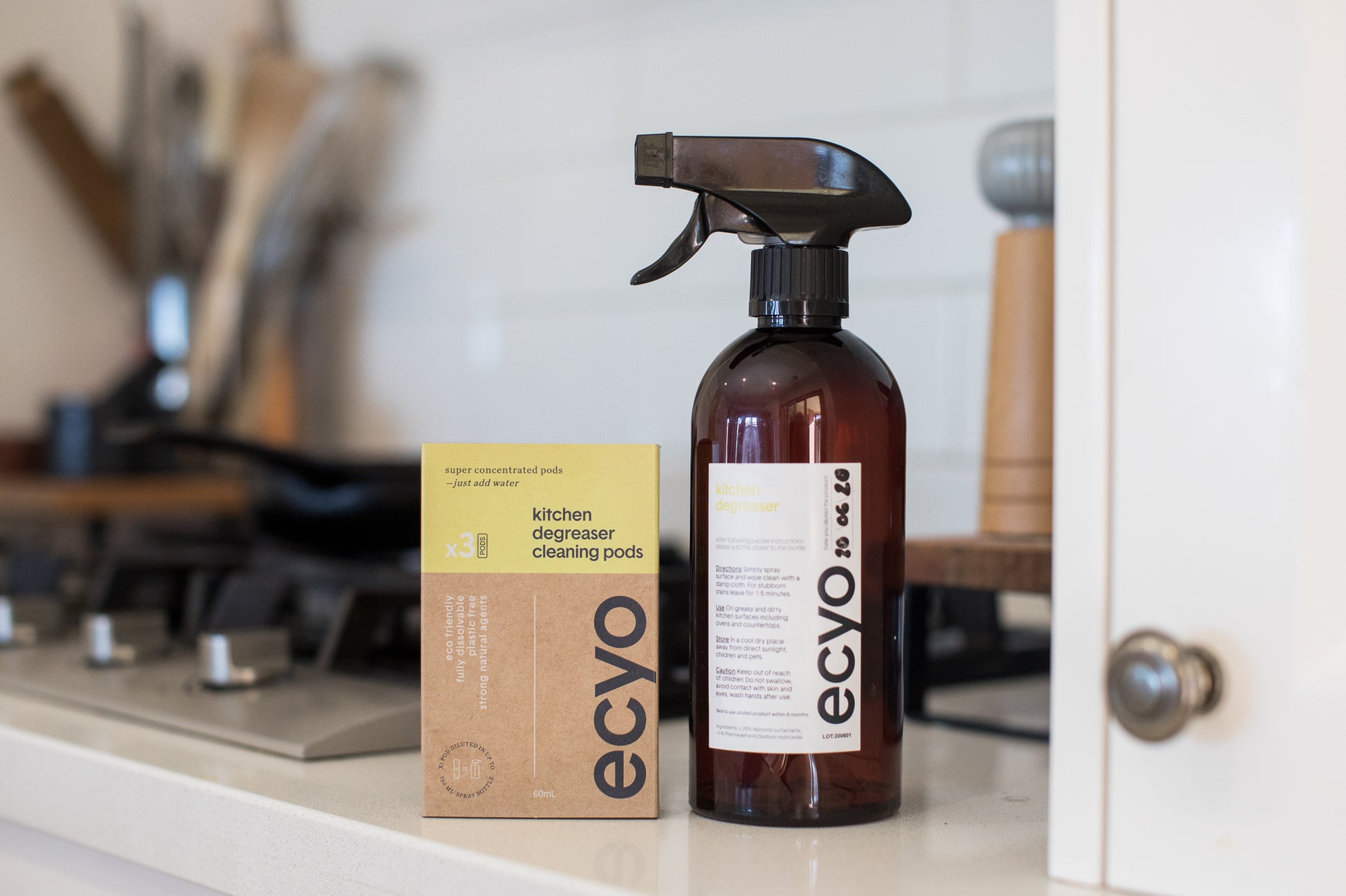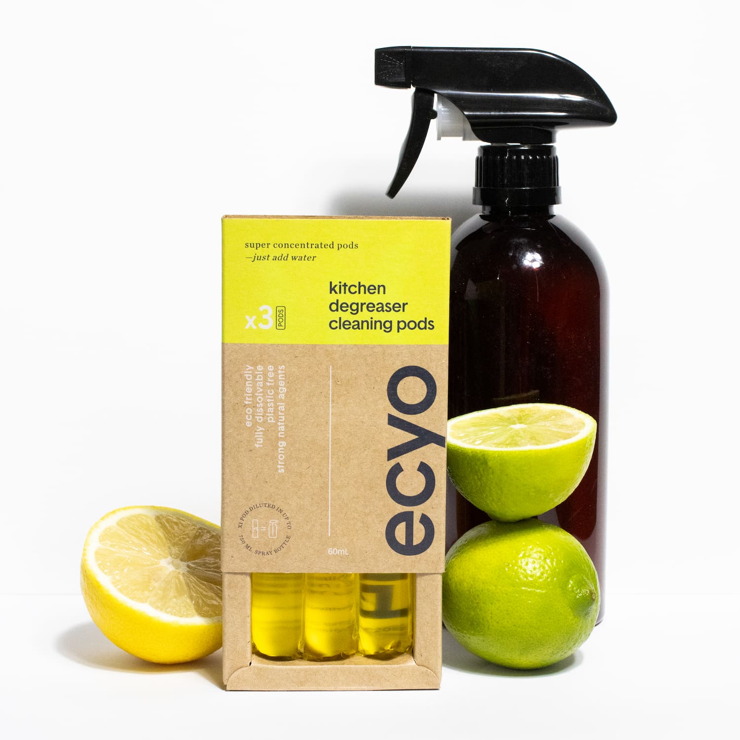 The pods fully dissolve in water. When added to water they make a powerful kitchen cleaning spray to leave the grimiest kitchen sparkling clean. Use anywhere In the kitchen.