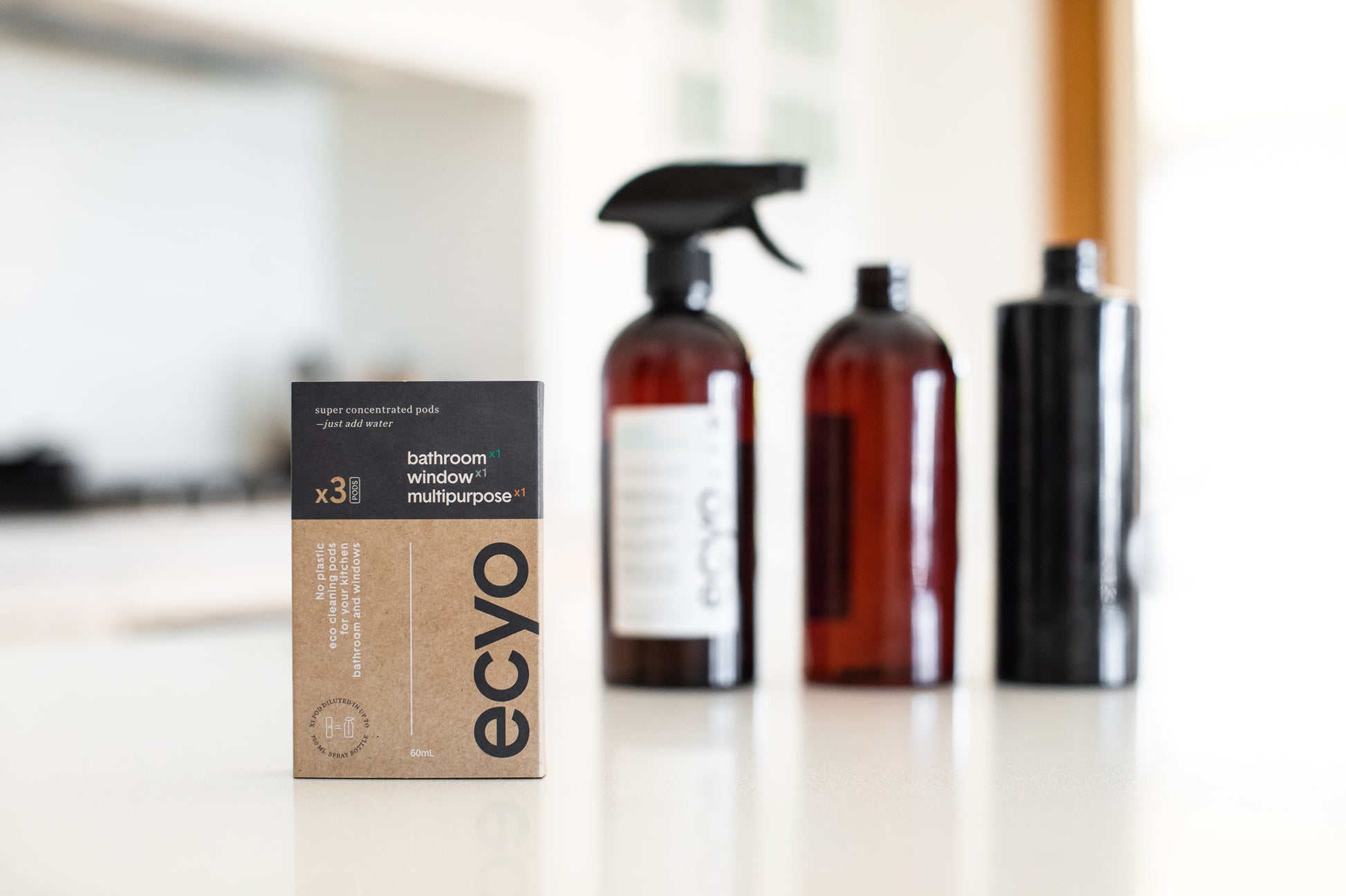 A note on bottle size: Most of our customers use a 500ml bottle which is going to work amazingly well. If you'd like a super-concentrated spray you can use as little as 300ml of water per pod, and they are also comparable to major brands at 750ml.