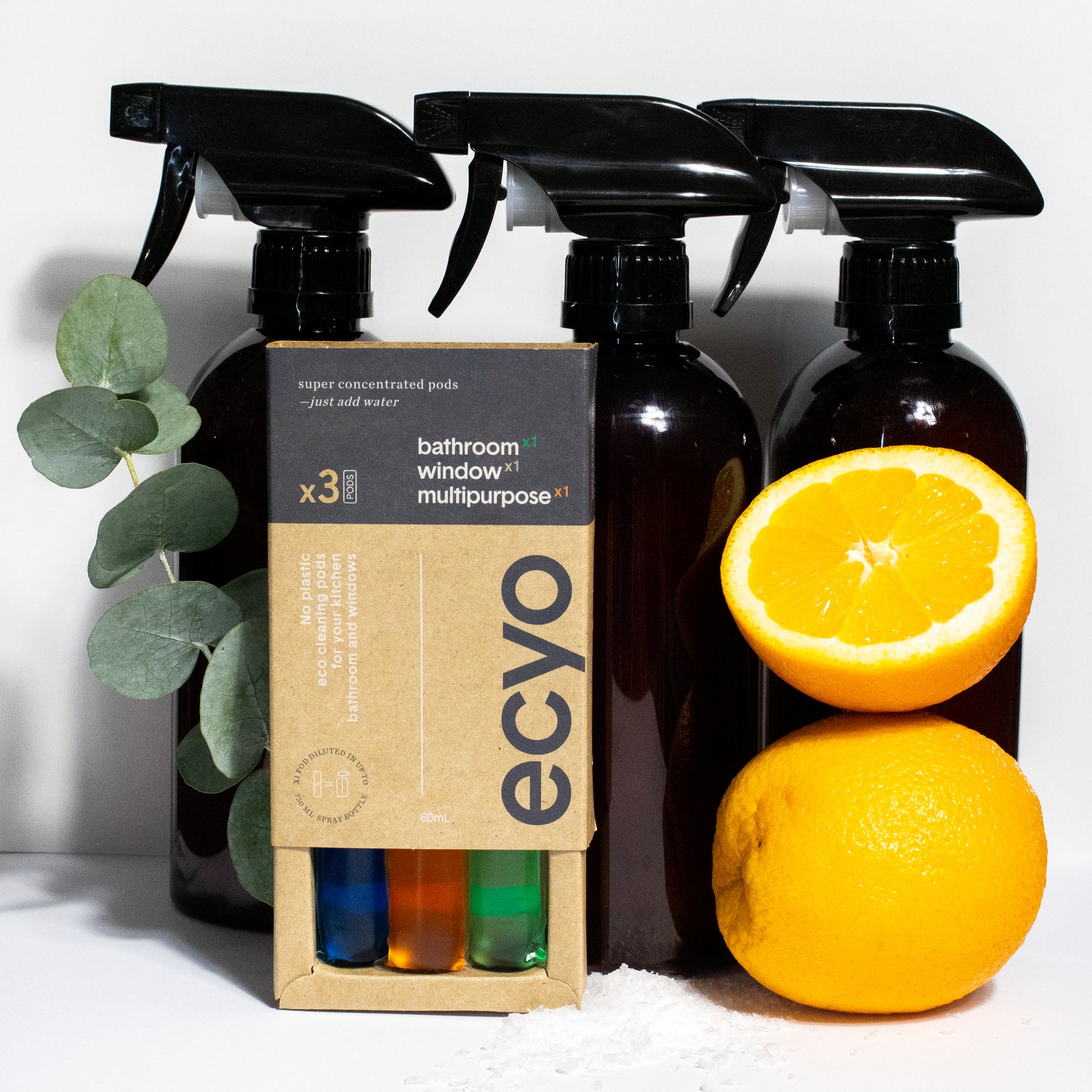 This starter pack includes: 1 box of mixed pods to make three cleaning sprays.